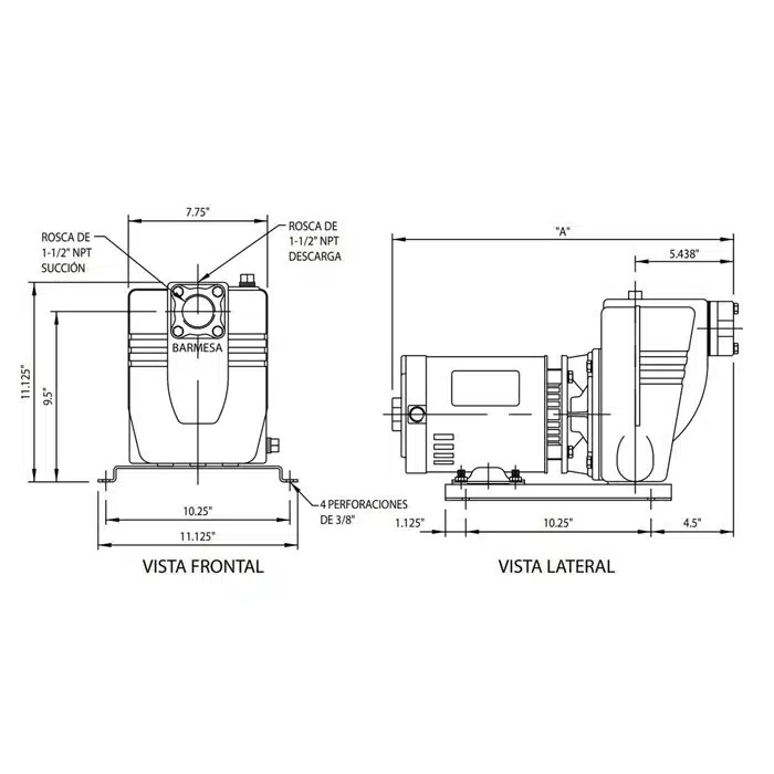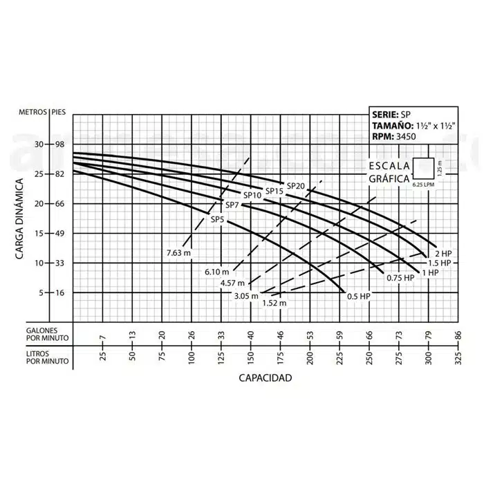 Bomba autocebante centrífuga Barmesa modelo SP20-1 de 2 Hp. Opera a 220 Vac monofásico con cuerpo de hierro, entregando 54 GPM a una presión de 23 MCA. Ideal para sistemas de transferencia de agua limpia con cebado automático rápido.