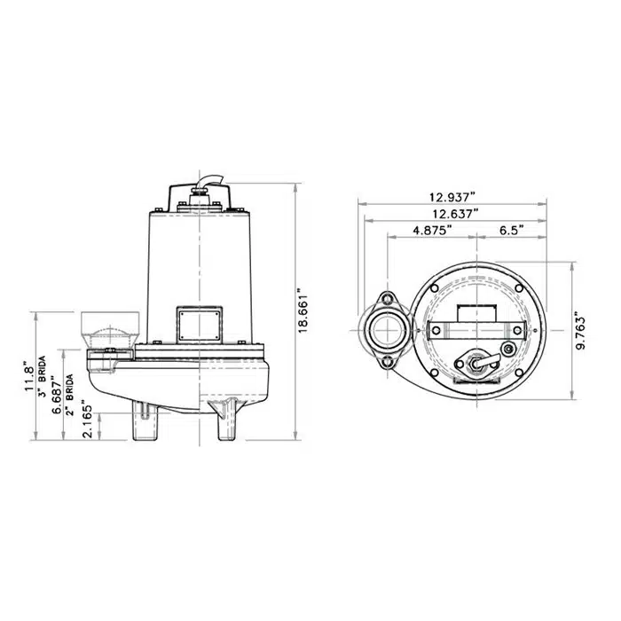 Electrobomba sumergible hídrica masiva Barmesa de 3 Hp para redes monofásicas de 220 Vac. Alcanza un flujo masivo de 240 GPM a una presión excepcional de 13 MCA. Cuerpo de hierro fundido diseñado para drenajes exigentes.