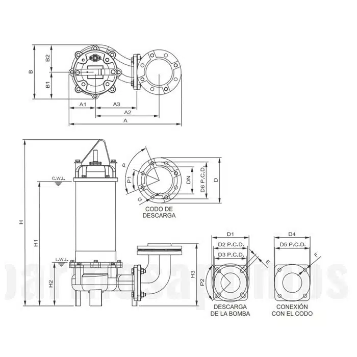 Bomba Barmesa | Sumergible | Aguas Negras | 5 Hp | 230 Vac | Acero Inoxidable | Monofásica | D 3″ | 10 MCA / 165 GPM | 70090075 – 3BSV-503DS |