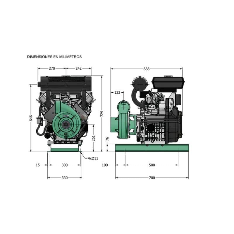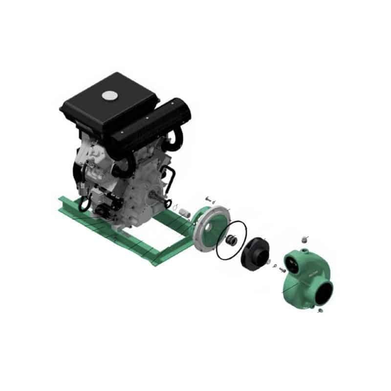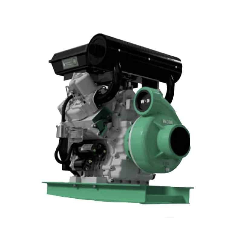 Electrobomba de alta potencia marca Barnes de 27 Hp equipada con motor diésel. Alcanza un flujo de 200 GPM a una presión de 58 MCA bajo operación profesional. Estructura de hierro fundido diseñada para transferencia eficiente de agua.