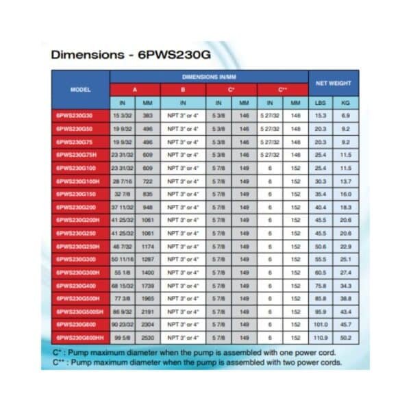Diseñada para pozos profundos de 6 pulgadas, la bomba Pearl 6PWS 230G50-D4M6 ofrece un rendimiento eficiente con 5.0 Hp de potencia y una construcción duradera en acero inoxidable, ideal para aplicaciones que requieren un suministro constante de agua a profundidades moderadas.