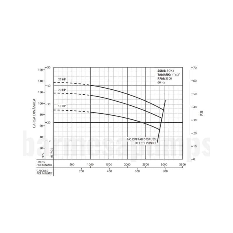 Electrobomba Barmesa | Centrífuga | 20 Hp | 220/440 Vac | Trifásica | Acero Inoxidable | SxD 4″ x 3″ | 30 MCA / 528 GPM | SOX-3-20-2 | 70080142