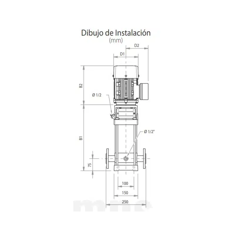 Bomba vertical multietapa marca Barmesa de 1.5 Hp trifásica (220/440 Vac). Alcanza 61 MCA con un flujo de 12 GPM. Fabricada en acero inoxidable 304 para garantizar resistencia a la corrosión y eficiencia en el uso del agua industrial.