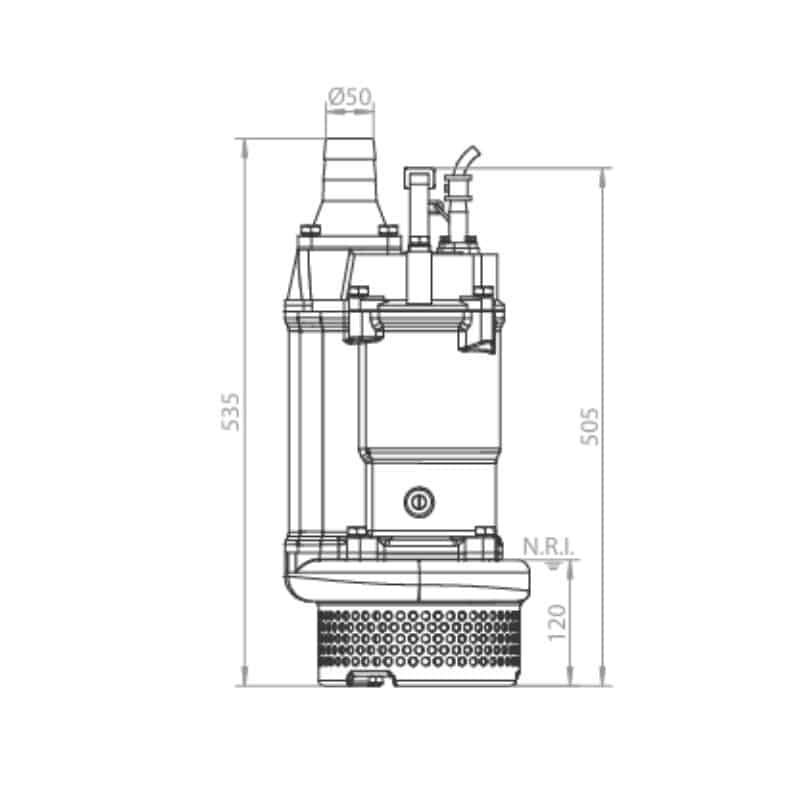 Electrobomba sumergible industrial masiva marca Barmesa de 2 Hp operando a 440 Vac. Alcanza una presión hídrica de 17 MCA con un flujo de 90 GPM. Cuerpo de hierro masivo diseñado para estaciones hídricas comerciales pesadas.