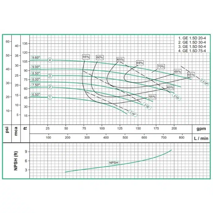 Electrobomba Barnes | Bombas Centrifugas | 5.0 Hp | 220/440 Vac | Trifásica | Hierro | SxD 2 – 1½» | 25 MCA / 100 GPM GE 1.5D 50-4 / 1B0203