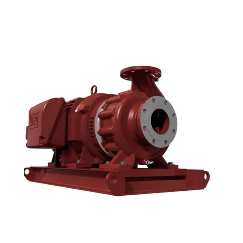 Electrobomba industrial masiva marca Barnes de 100 Hp certificada para red contra incendio. Entrega un caudal hídrico masivo de 800 GPM a 90 MCA bajo tensión trifásica de 220/440 Vac. Solución técnica líder para estaciones de emergencia de gran escala.