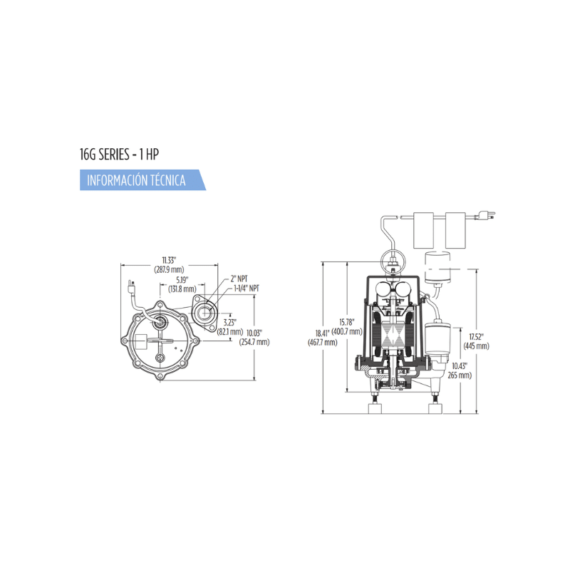 Bomba sumergible trituradora Barnes de 1 Hp para redes de 220 Vac monofásicas. Proporciona un rendimiento de 11 MCA y un caudal de 30 GPM. Equipada con sistema de corte de alta precisión para el manejo de aguas residuales con sólidos densos.