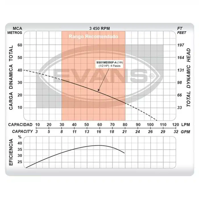 Electrobomba Evans | Sumergible | 0,5 Hp | 110 V | 4 Etapas | Monofásico | Acero Inox. | D. 1″ | 21 MCA / 16 GPM | SSX1ME050F-A
