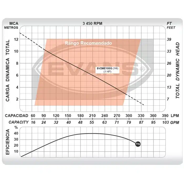 Electrobomba Evans | Sumergible | 1 Hp | 220 V | Trifásico | Hierro | D. 2″ | 6 MCA / 55 GPM | SV2ME100G
