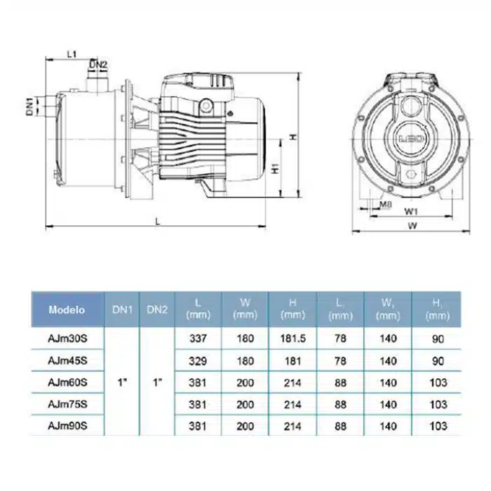 Electrobomba Leo Pump | Jet Autocebante | 0.6 Hp | 110/220 Vac | Monofásico | Acero Inoxidable | SxD 1″ x 1″ | 16 MCA / 6 GPM | LG0674 AJM45S INOX