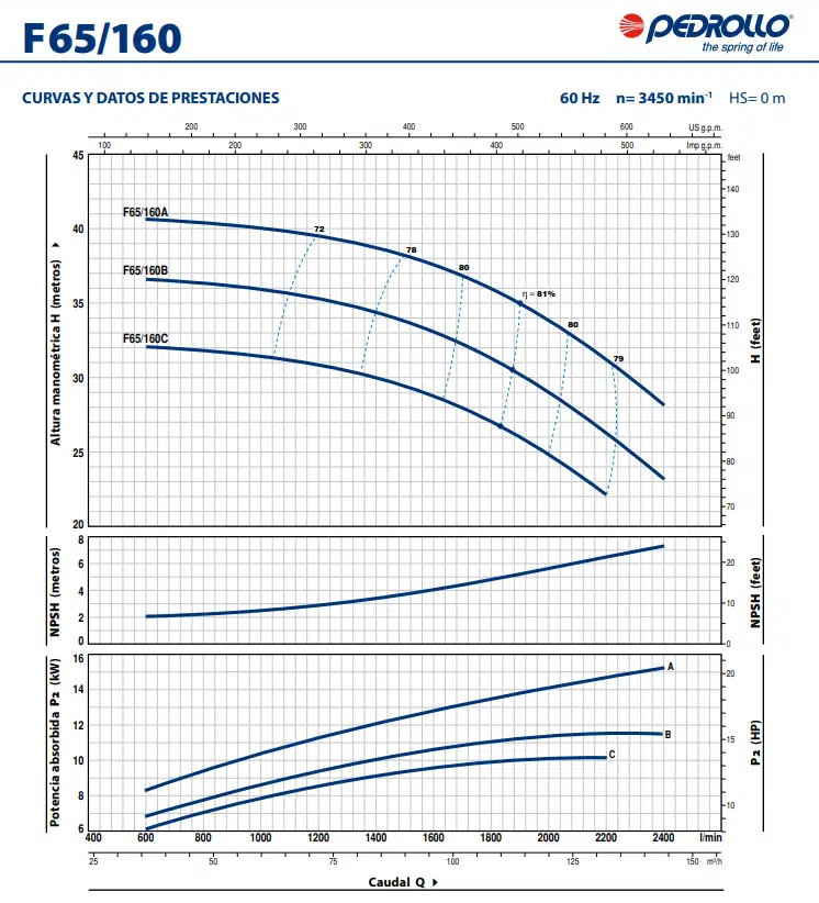 Electrobomba Pedrollo | Centrífugas Normalizadas «733» | Hierro | 20 Hp | 220/440 | Trifásico | 40 MCA / 220 GPM | F65/160A | 1-4-24