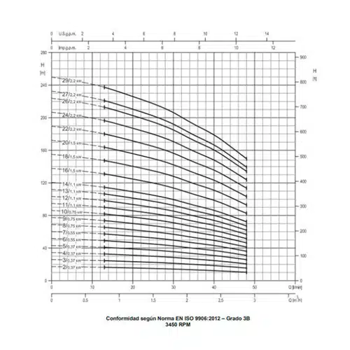 Esta bomba Ebara, modelo EVMSG 1 18F6 E/1,5, es una electrobomba vertical de 2.0 Hp que opera con corriente trifásica, ideal para aplicaciones que requieren una presión moderada (150 MCA) y un caudal bajo (hasta 3 GPM), fabricada en acero inoxidable para mayor durabilidad y resistencia a la corrosión.
