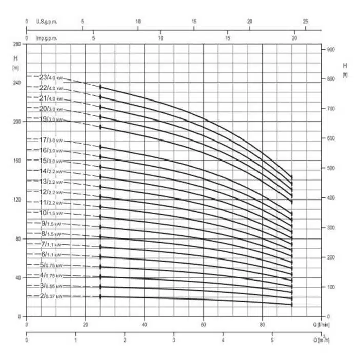 La Ebara EVMSG 3 14F6 E/2,2 es una bomba multietapas vertical de 3.0 Hp y motor trifásico, capaz de suministrar agua limpia a una presión de 132 MCA, con un caudal de hasta 6 GPM, construida en acero inoxidable 304 para un rendimiento confiable.