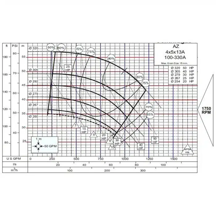 Motobomba Hidromac LÍNEA AZ | Centrífuga | 1800 RPM | 50 Hp | Hierro | Trifásica | SxD 5″ x 4″ | 48 MCA / 900 GPM | 3206 / 100-330A