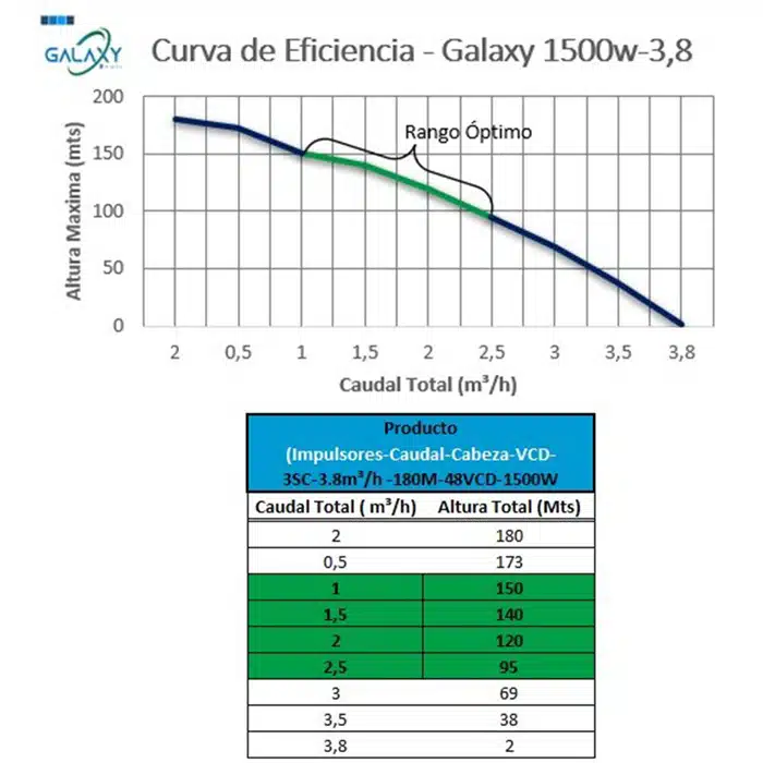 Revoluciona tu sistema de bombeo con la Bomba Solar Galaxy. Sumergible y potente, con 1500W de energía solar (110 – 150V DC). Su diseño robusto de 2″ y un caudal de 8 GPM a 120 metros aseguran un rendimiento óptimo. La Bomba Galaxy redefine la eficiencia, ofreciendo un suministro de agua confiable y sostenible para satisfacer tus necesidades.