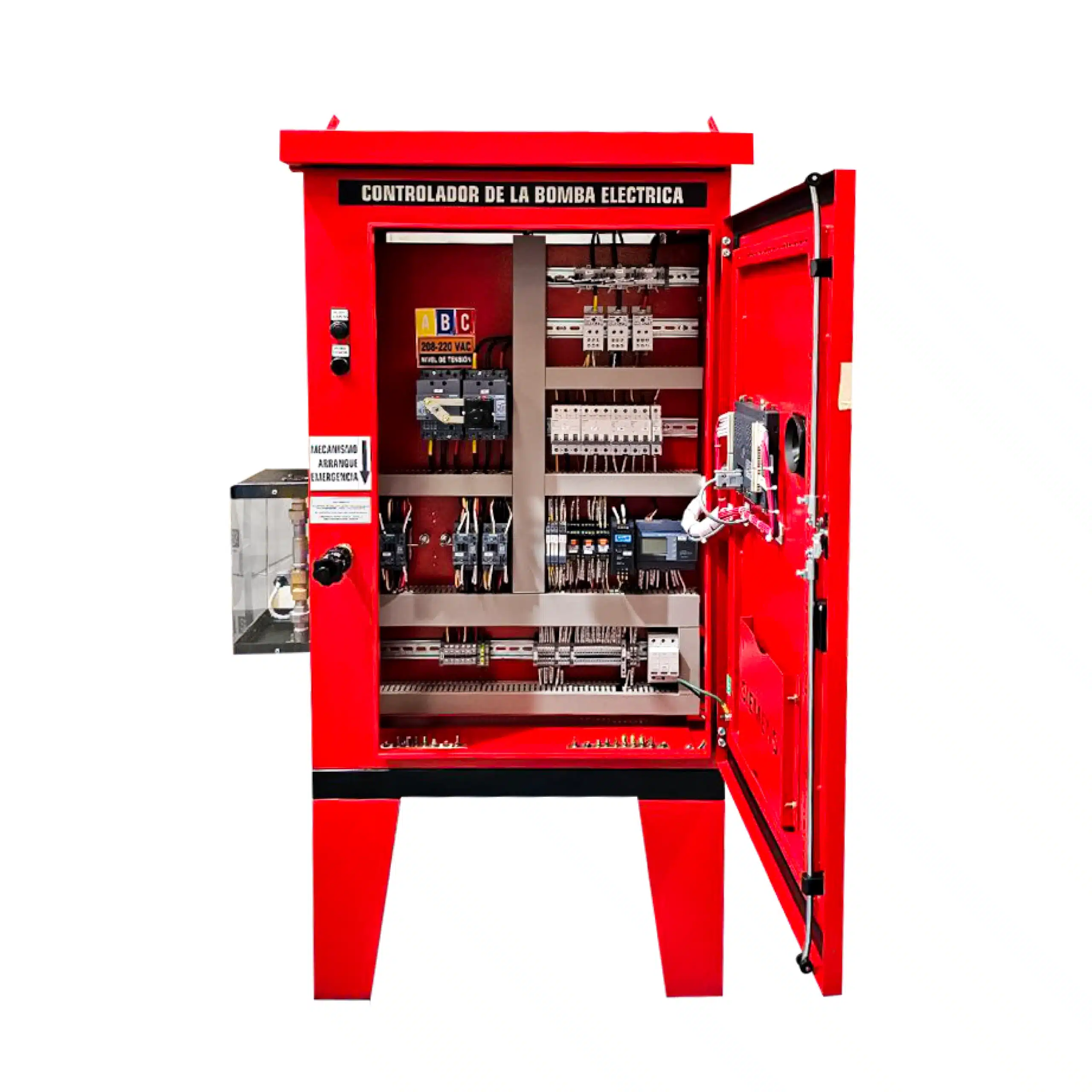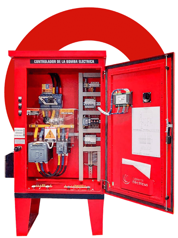 Es el encargado de monitorear la presión, iniciar la bomba de forma automática o manual, y gestionar las alarmas y protecciones. Fabricado en Colombia bajo los estrictos requisitos del Capítulo 10 de la NFPA 20 y certificado bajo el RETIE para la seguridad eléctrica.