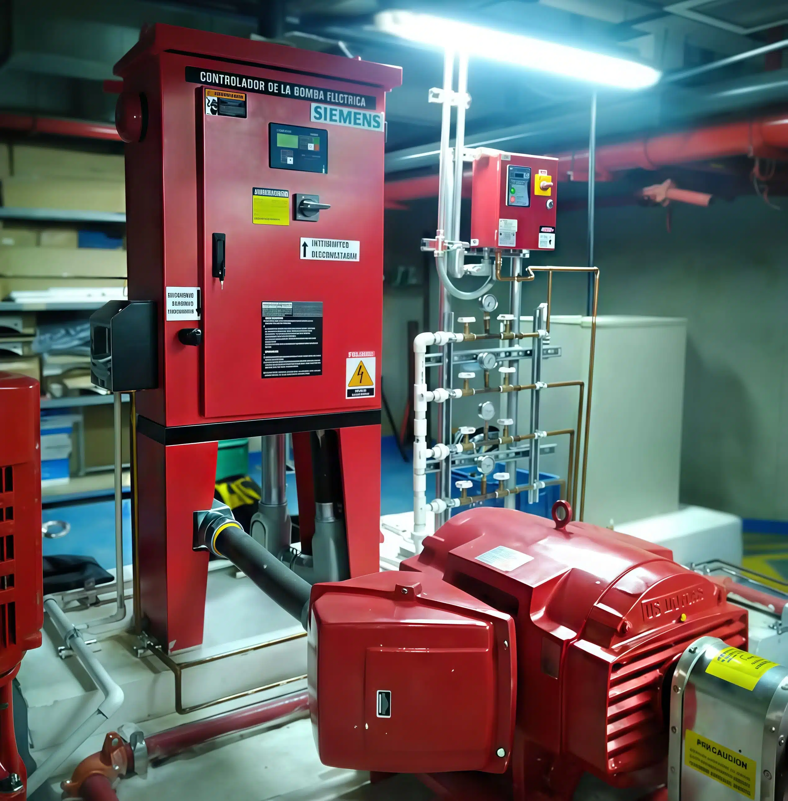 Sistemas de bombeo contra incendio con motor eléctrico para bomba principal con tablero controlador certificado Retie y fabricado bajo norma NFPA20