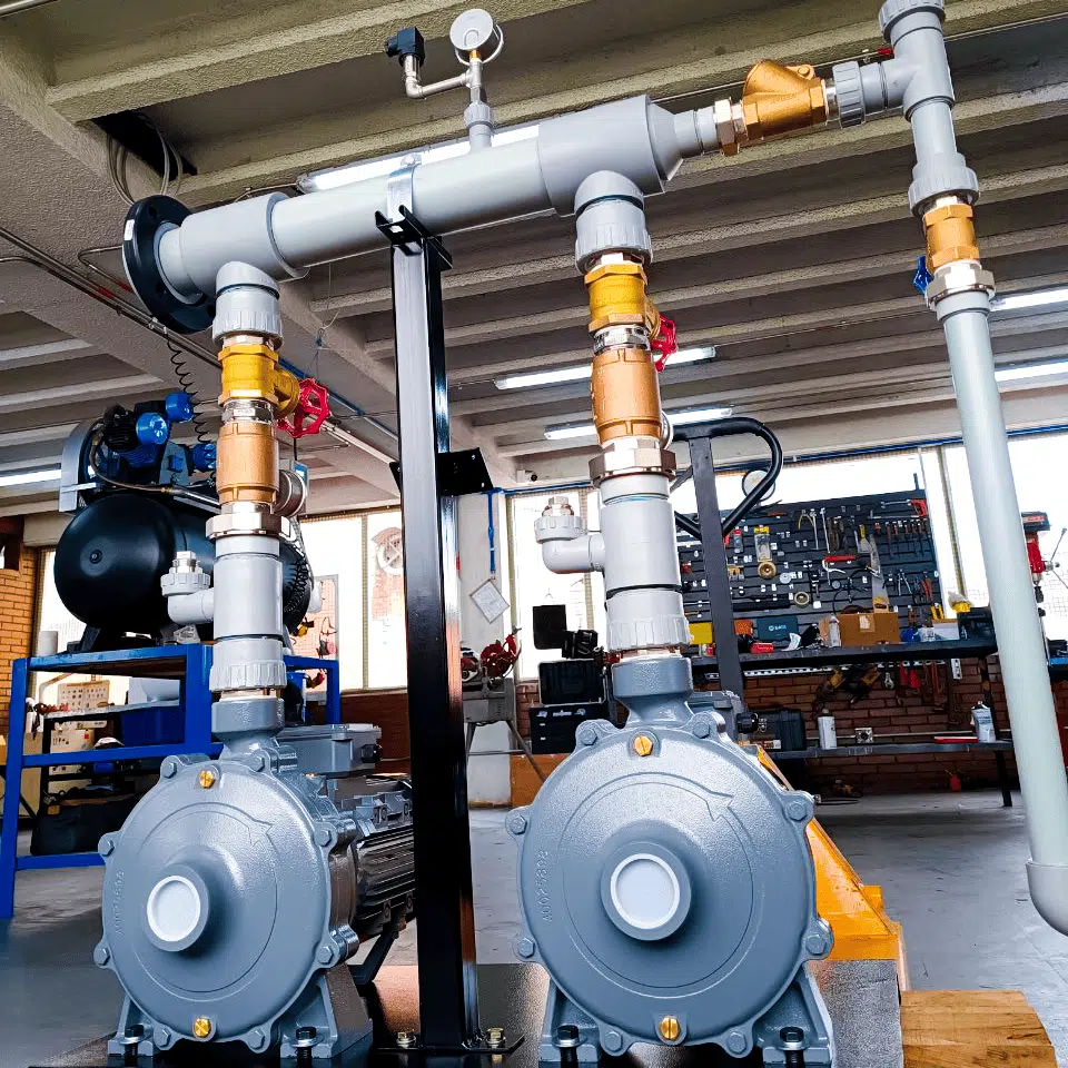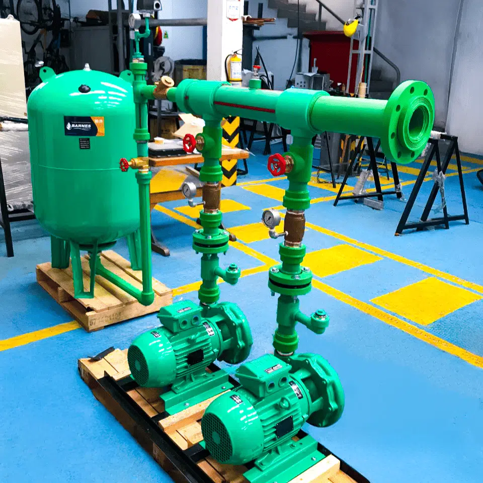 ¡Disminuya las fluctuaciones de presión, altos consumos de energía y las preocupaciones por la calidad del agua! Los sistemas pre-ensamblados facilitan el suministro de agua optimizado sin importar la cantidad de bombas que necesite operado con variadores de velocidad de alta tecnología y tuberías de polipropileno de última generación.